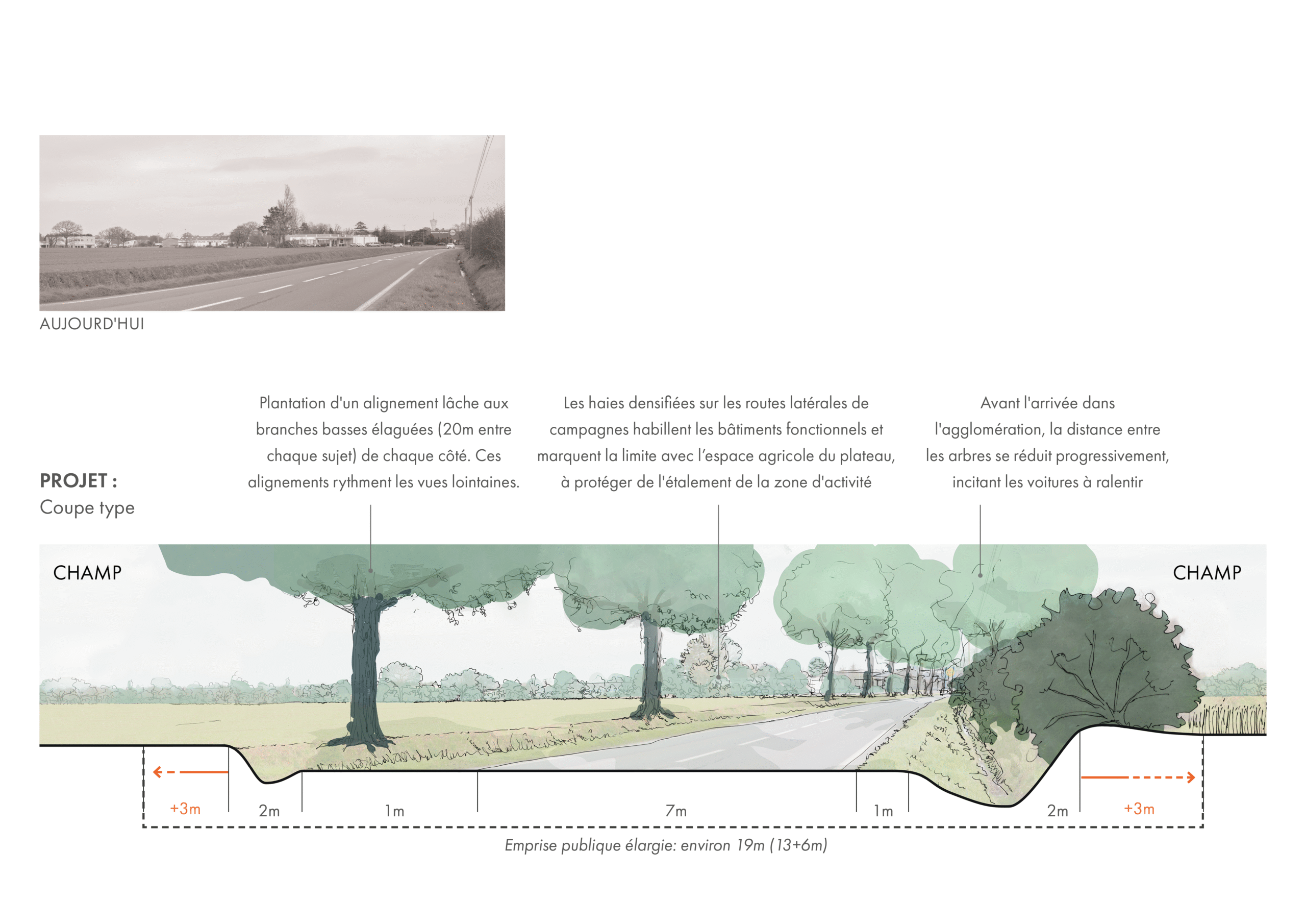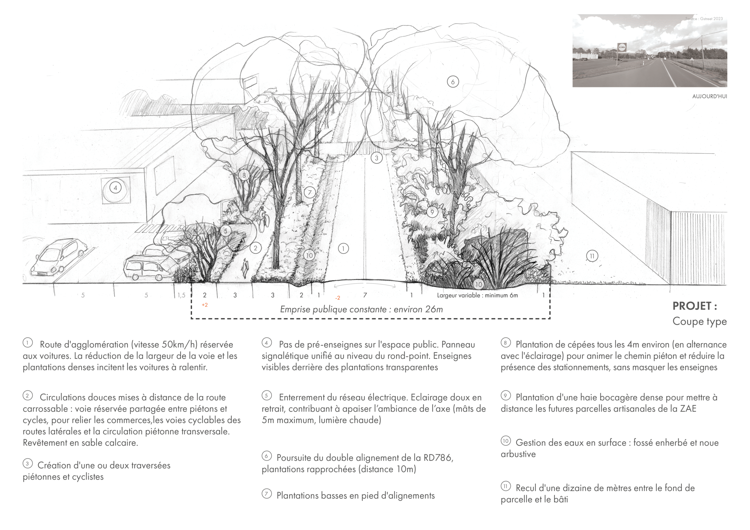 Projet : coupe-type de l’entrée de ville