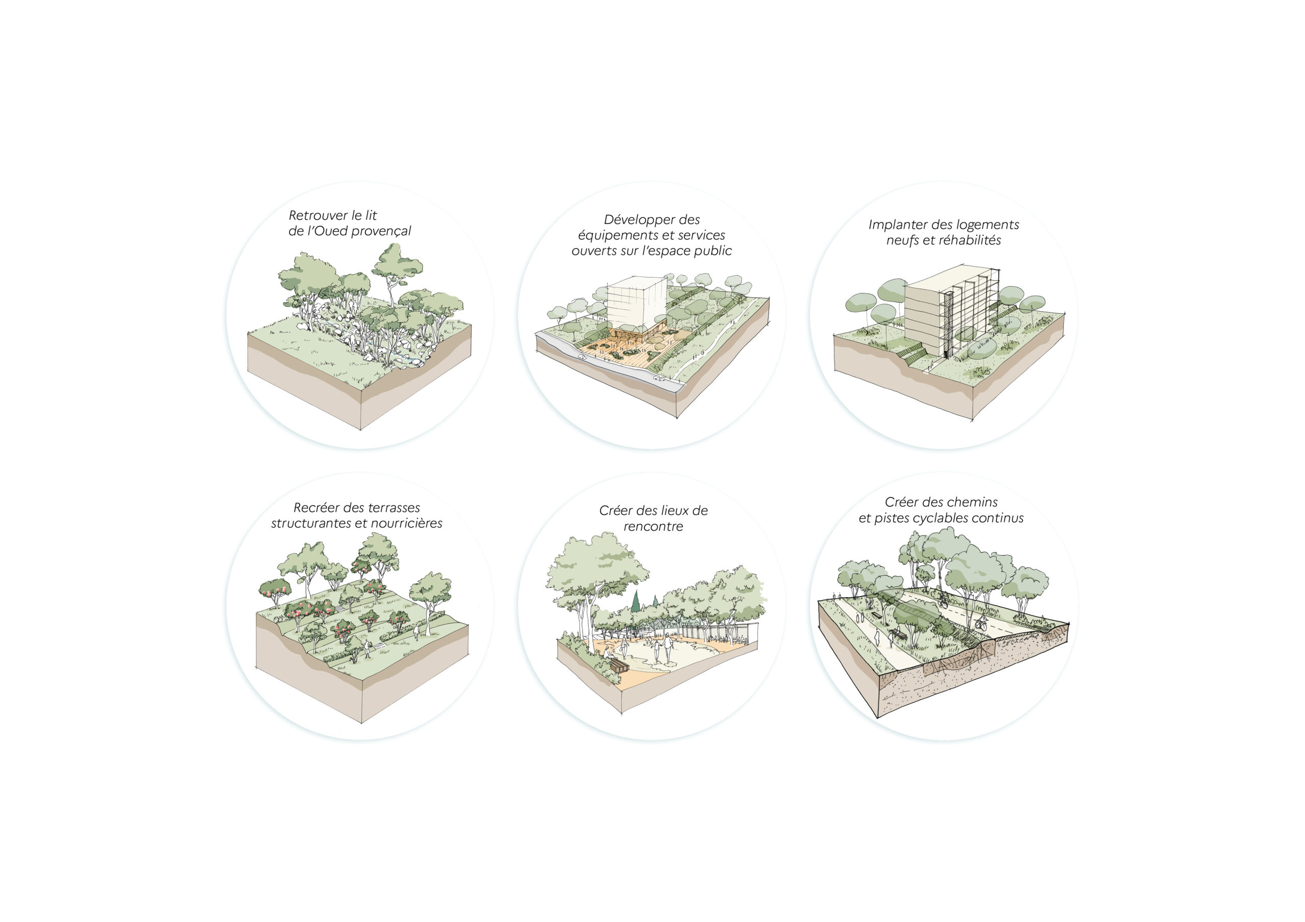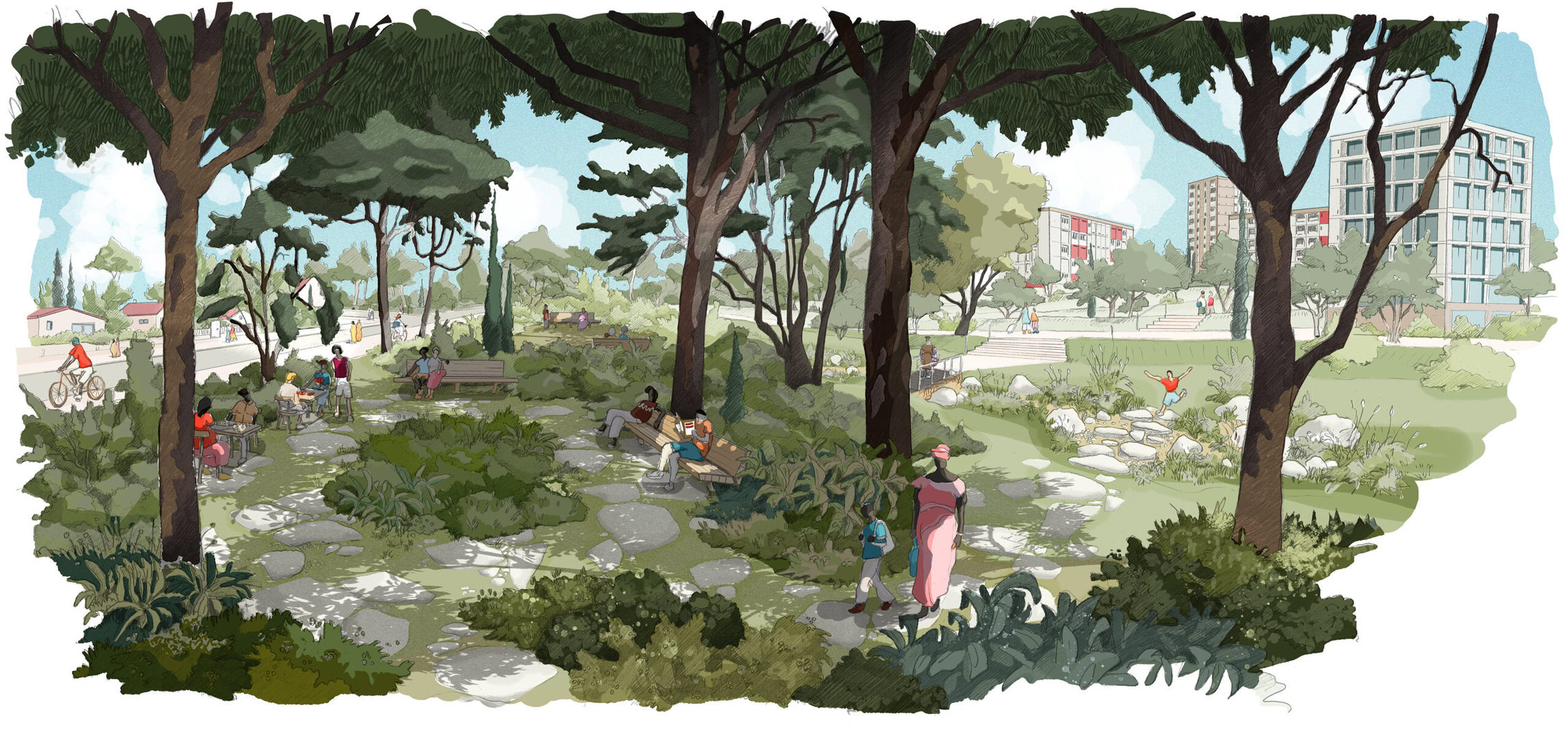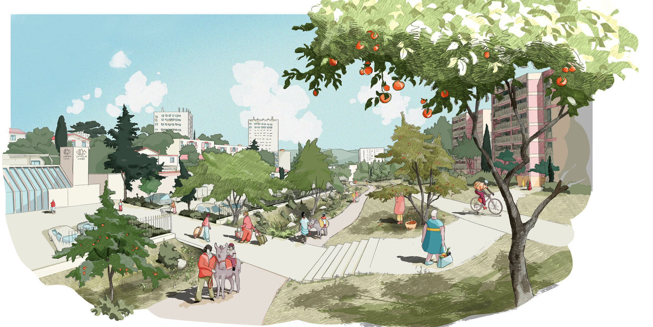 Le défi est double : retisser des liens sociaux et spatiaux tout en répondant aux urgences climatiques qui touchent les pentes provençales. Plutôt que d’imposer une vision préconçue, le projet s’ancre dans le quotidien, écoute les récits des habitants, observe les pratiques informelles qui animent déjà les friches et les pieds d’immeubles. Le parc n’est pas dessiné comme une entité figée, mais comme un espace vivant, capable d’évoluer avec ceux qui l’habitent et le traversent.
