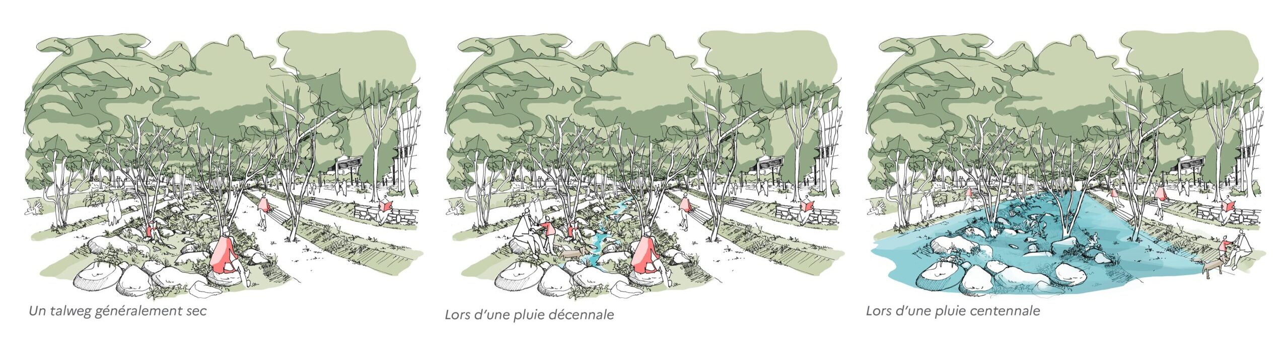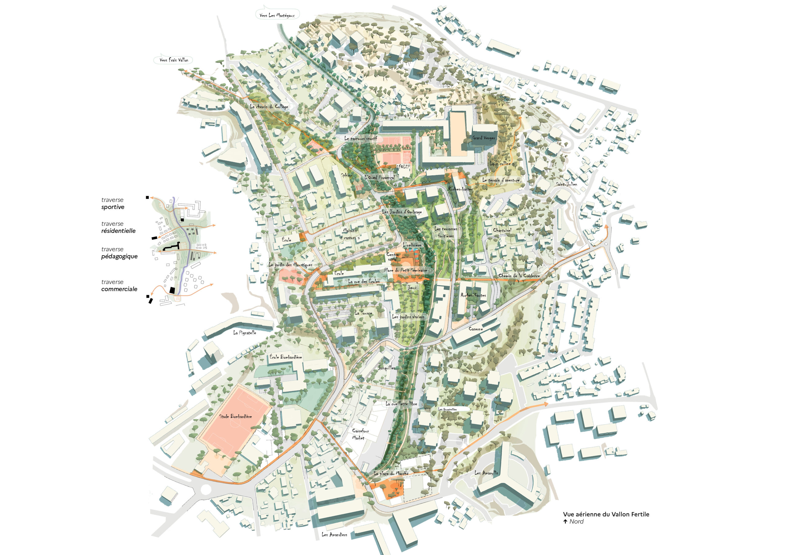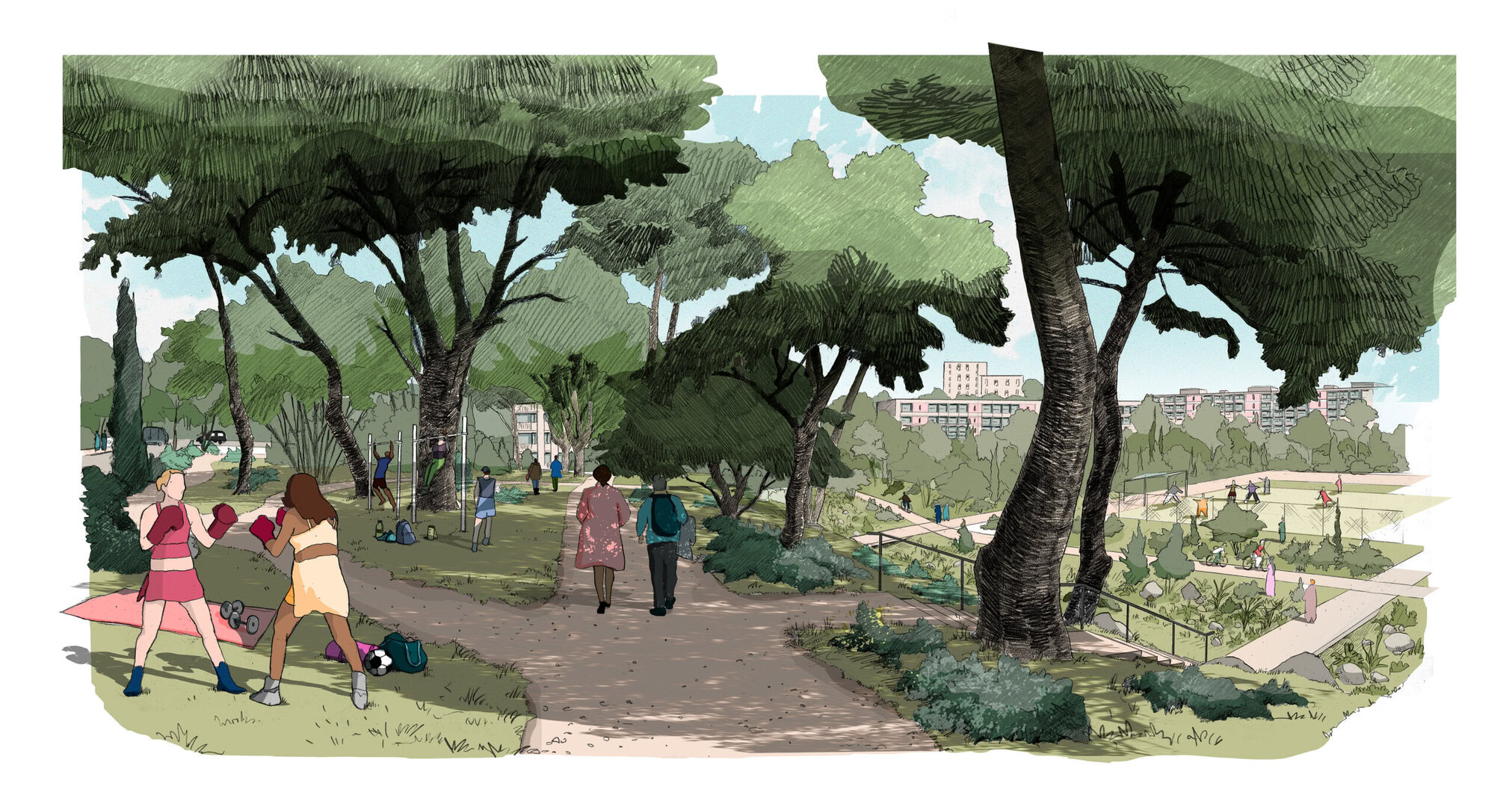 Le défi est double : retisser des liens sociaux et spatiaux tout en répondant aux urgences climatiques qui touchent les pentes provençales. Plutôt que d’imposer une vision préconçue, le projet s’ancre dans le quotidien, écoute les récits des habitants, observe les pratiques informelles qui animent déjà les friches et les pieds d’immeubles. Le parc n’est pas dessiné comme une entité figée, mais comme un espace vivant, capable d’évoluer avec ceux qui l’habitent et le traversent.